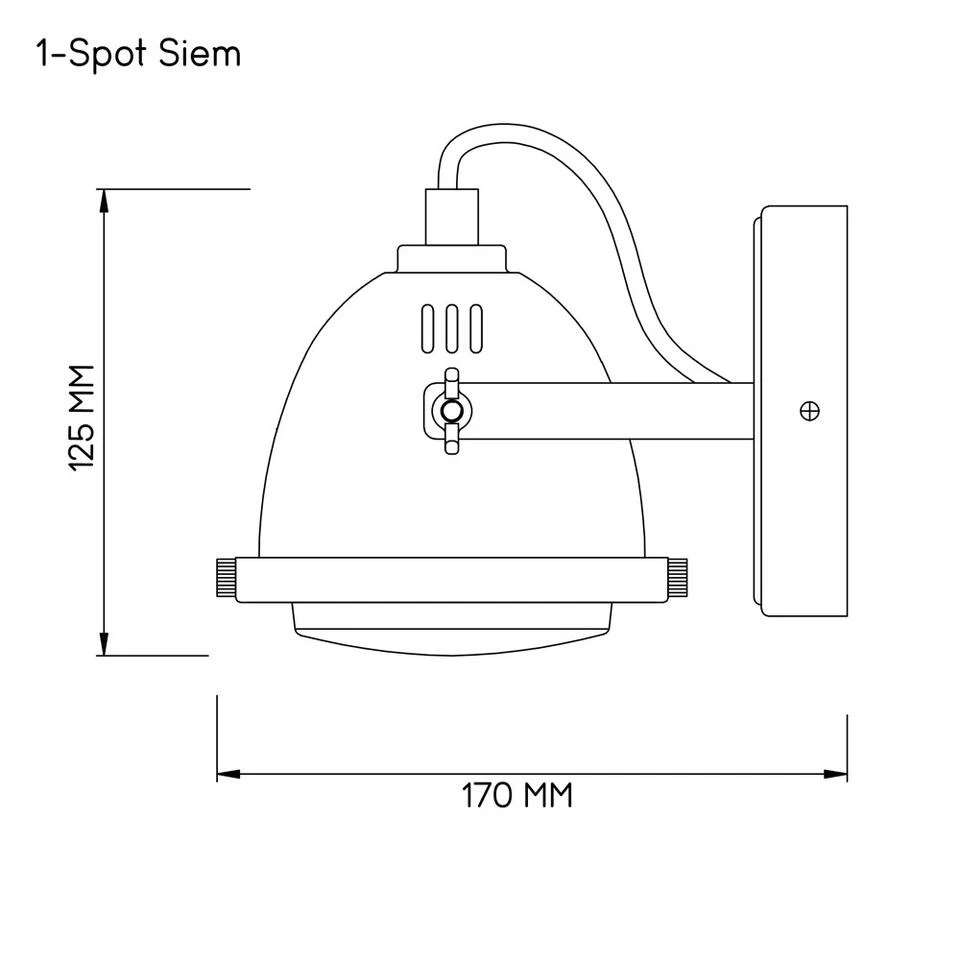 1-spot Siem heeft een stoere en industriële look. Dit spotje is geschikt voor één lichtbron. Het spotje is gemaakt van hout en metaal. Met 1 GU10-fitting.