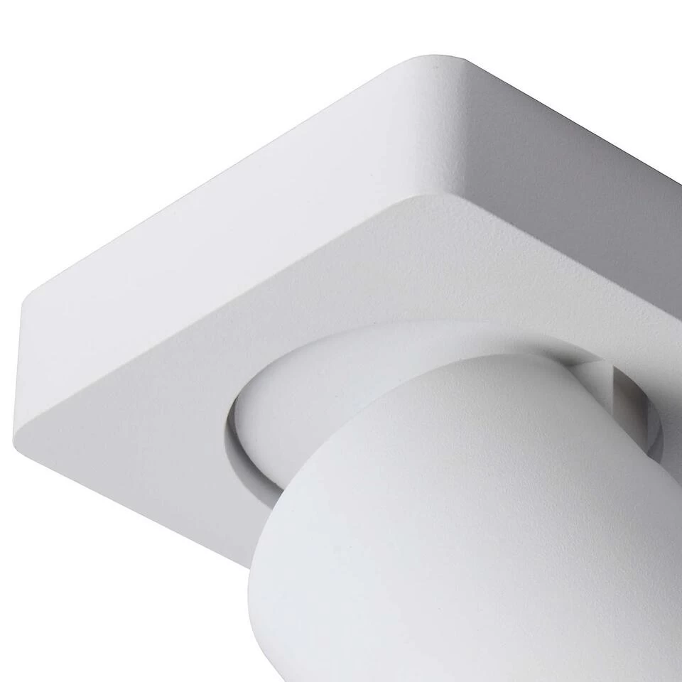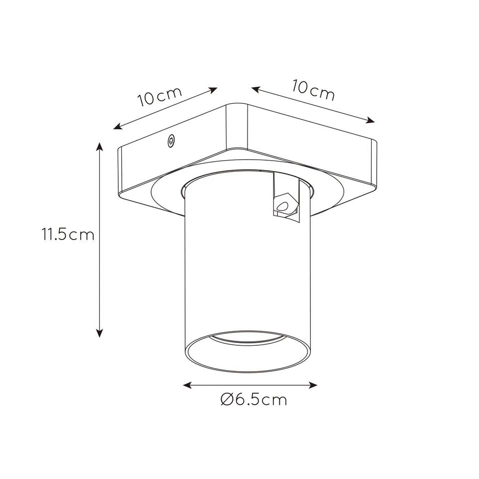 Deze 1 lichts spot is eventueel ook geschikt om aan de wand te monteren. De cilinder heeft een diameter van 6,5 cm en een lengte van 8 cm. De totale hoogte is 11,5 cm en de breedte van de plafondplaat is 10 cm. Kleur: Mat-wit.