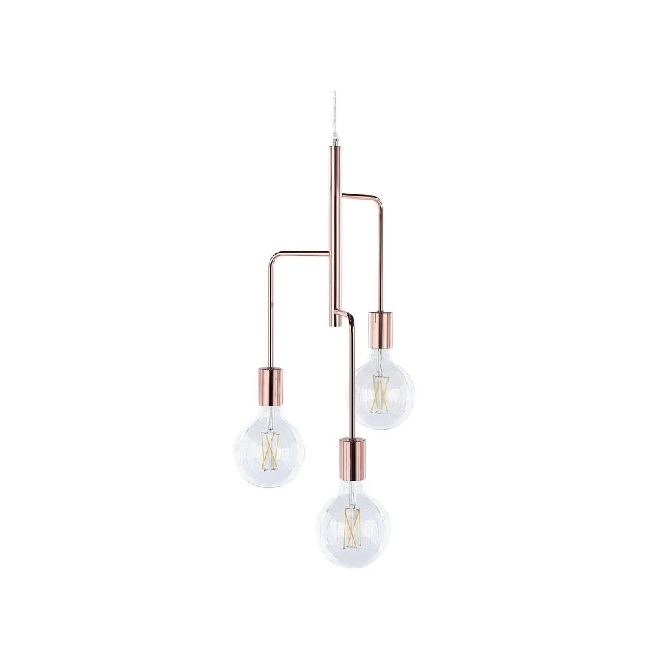 Unieke hanglamp in glanzend koper. Deze decoratieve hanglamp van glanzend, koperkleurig metaal combineert een klassiek design met een modern tintje. Drie slanke, gebogen lamparmen, die zich op verschillende hoogtes begeven ten opzichte van het langwerpig middenlichaam van de lamp, geven de lamp een speels effect. Deze schitterende accessoire vindt een plaats in vrijwel alle inrichtingsstijlen. De lamp is geschikt voor lampen met een E27-fitting van maximaal 40W. Lichtbronnen worden niet meegeleverd.