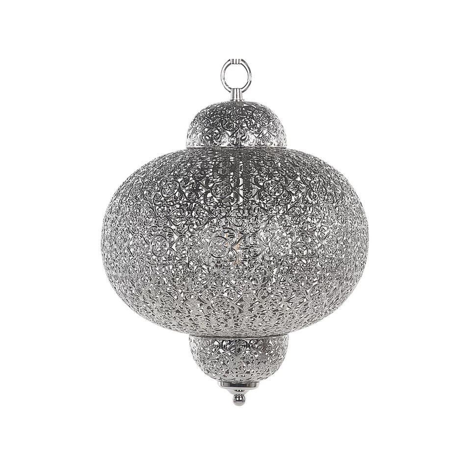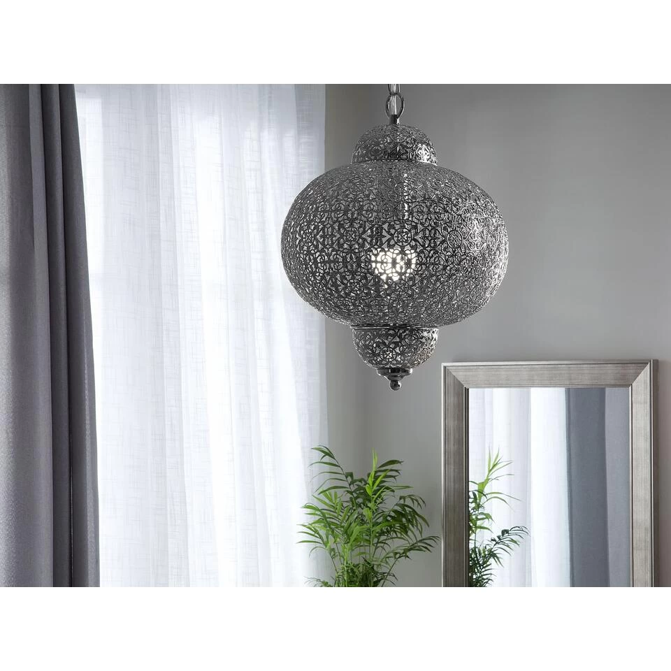 Hanglamp met oosterse charme. Deze hanglamp met sierlijke elementen laat jouw huis stralen met een aangenaam en warm licht. Het metalen omhulsel van de lamp in mat wit doet denken aan een lantaarn en roept een oriëntaalse sfeer op. De speelse ornamenten geven jouw woonkamer een romantische en tegelijkertijd exotische sfeer. De lamp past bij verschillende inrichtingsstijlen, zowel modern als klassiek.