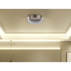 Moderne plafonniere met Ingebouwde LED-lamp. Verfraai je interieur met deze elegante, maar functionele plafondlamp. De ingebouwde LED garandeert gezellige verlichting die een mooie sfeer creëert in een kamer. De lichtbruine kleur met een metalen afwerking kan een mooie aanvulling zijn op elke woonkamer, slaapkamer of hal in modern design.