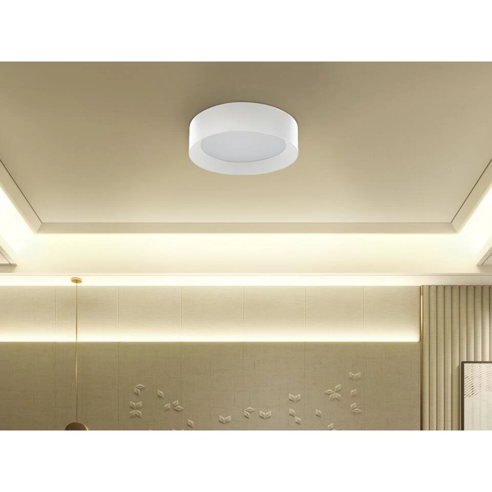Moderne plafonniere met Ingebouwde LED-verlichting. Breng een Scandinavisch accent aan in je woonkamer, hal of slaapkamer met deze klassieke plafondlamp. De lamp heeft een robuust stalen frame dat dankzij de tijdloze, witte kleur perfect in elk interieur past. De lamp heeft een ingebouwd LED-lampje, dat zorgt voor een zachte, diffuse verlichting.