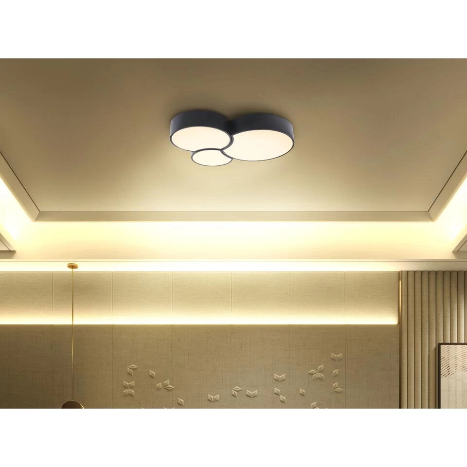 3-lichts led-inbouwmontage. Een drievoudige inbouwlamp die functionaliteit combineert met een elegant, minimalistisch design. De geometrische behuizing in matzwarte kleur heeft drie tinten gemaakt van melkacryl die kunnen worden gegroepeerd of afzonderlijk kunnen worden geïnstalleerd. Uitgerust met LED’s straalt de lamp warm, zacht licht uit, waardoor de kamer een natuurlijke charme krijgt. Zo’n lamp is niet alleen een lichtbron, maar ook een ongewone plafonddecoratie.