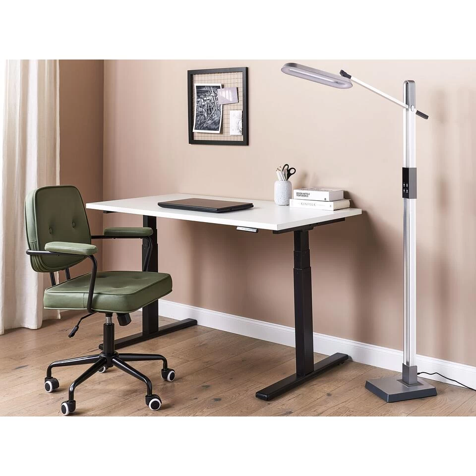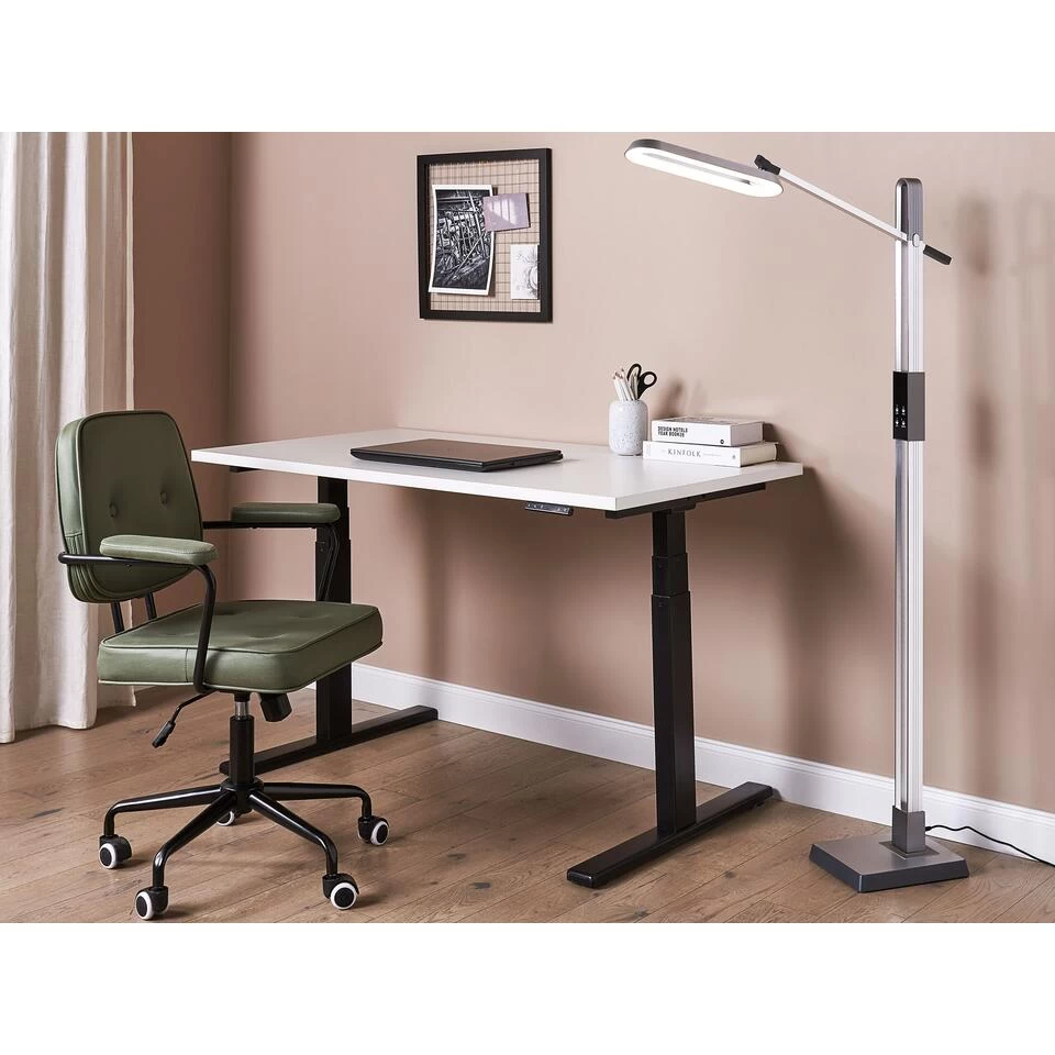 Moderne LED-lamp met dimmer en aanraakschakelaar. Maak je kantoorruimte helder en perfect voor verschillende taken met deze LED-lamp. Het stuk, gemaakt van duurzaam kunststof en aluminium, gaat vele jaren mee, zelfs zonder dagelijks onderhoud. Hierdoor hoef je je nooit meer zorgen te maken dat je niet genoeg licht hebt. De lamp heeft 3 standen, elk met een andere lichtintensiteit, en de arm en kap kunnen worden aangepast aan je behoeften. Het stuk is eenvoudig te bedienen dankzij aanraakschakelaars, geplaatst op een LCD, die ook de huidige tijd, datum en temperatuur weergeeft. De lamp staat stabiel dankzij de rechthoekige voet. Unieke vorm en trendy, donkergrijze kleur zorgen ervoor dat dit accessoire goed past in moderne, industriële interieurs.