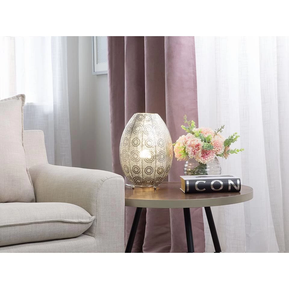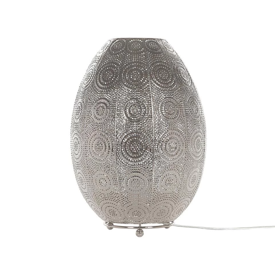 Bolvormige tafellamp met decoratief patroon. Een stukje sfeer voor jouw 4 muren – deze prachtige tafellamp in ovale vorm heeft een interessante structuur, waardoor een warm licht glinstert. Bovendien betovert het met zijn stijlpatroon en transformeert elke kamer in een oase van ontspanning. Of je nu in de woonkamer of slaapkamer bent, beloon jezelf op een gezellige sfeer met deze decoratieve lamp.