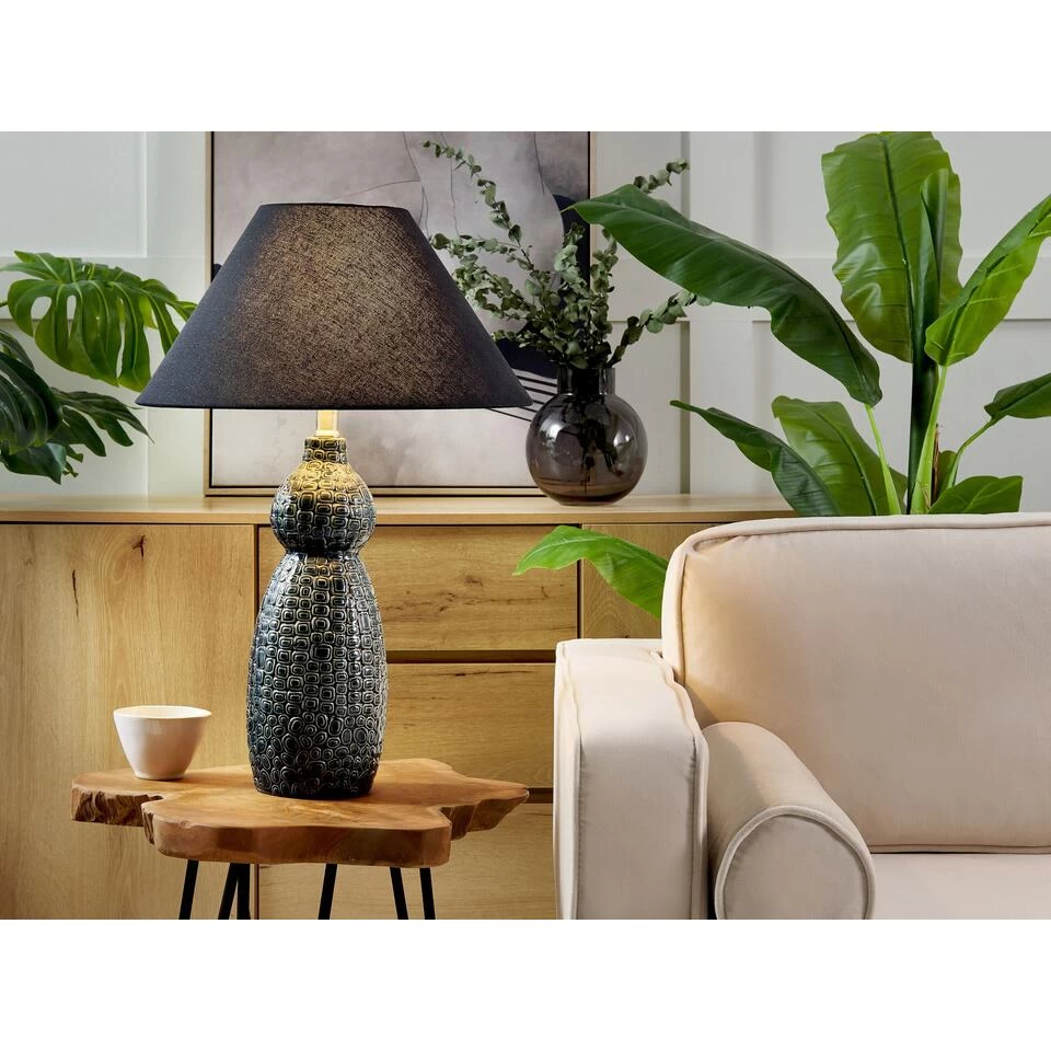 Stijlvolle tafellamp met siervoet. Deze lamp is dankzij zijn unieke keramische voet een buitengewoon decoratie-element. Het moderne design contrasteert perfect met de lampenkap in een klassieke, kegelvorm, gemaakt van linnen van goede kwaliteit. Dit stuk staat garant voor een subtiel, sfeervol licht en is daarom perfect als verlichting voor de slaap- of woonkamer.