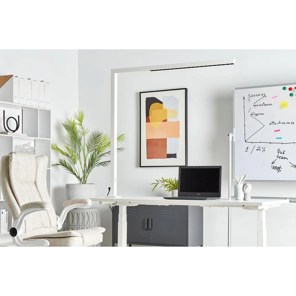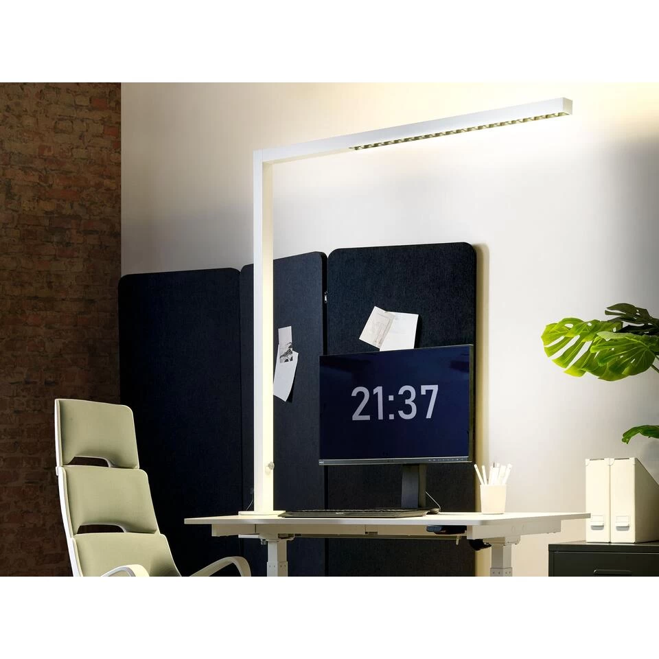 Vastklem bureaulamp. Creëer een functionele werkomgeving die je helpt om te focussen met deze praktische bureaulamp. Het LED licht in de lamp geeft een fijne verlichting in een neutrale witte temperatuur, waardoor hij perfect is voor werk of studie. De helderheid kun je gemakkelijk aanpassen dankzij de ingebouwde knop en de lamp aan de bovenkant om je omgeving te verlichten. Daarnaast heeft de lamp een klem aan de basis waardoor je hem gemakkelijk stabiel kan installeren waardoor hij weinig ruimte in beslag neemt en je hem niet kan omstoten.