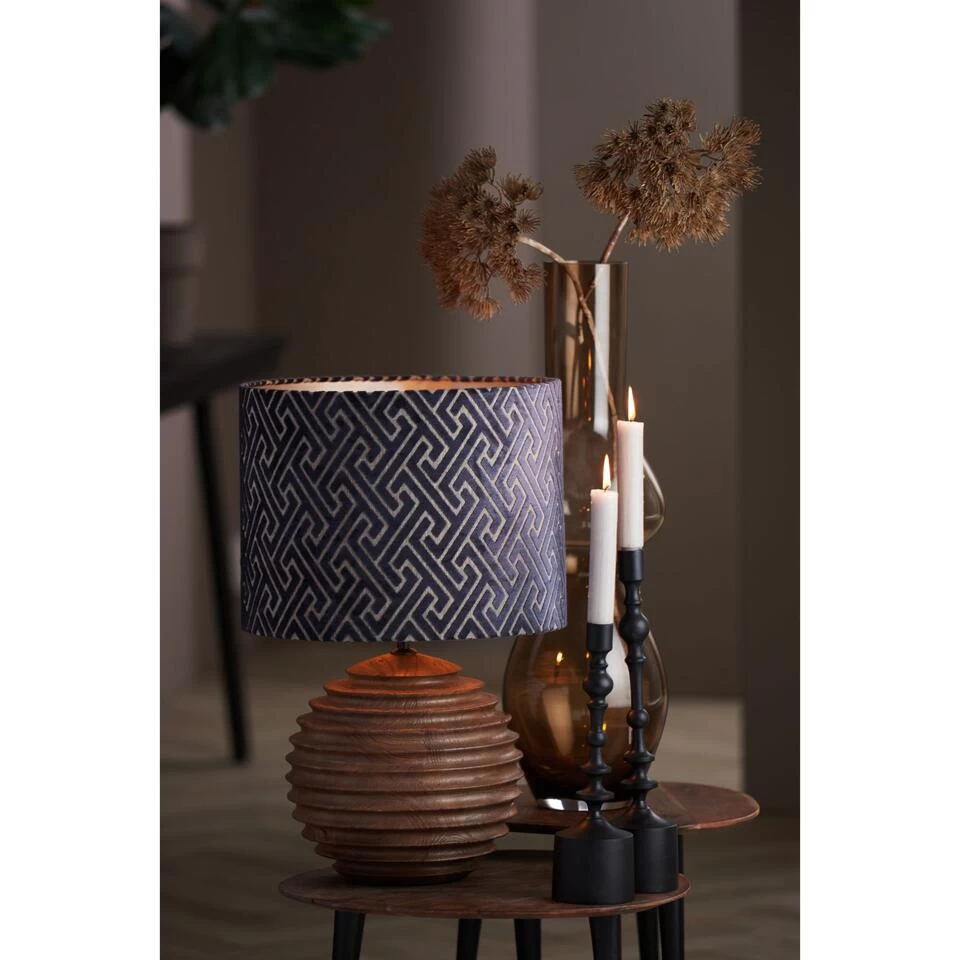 Geef je woonkamer een luxe gevoel met deze chique Maze lampenkap. De grafische print op de crèmekleurige stof maakt deze lampenkap extra uniek. Wie wilt nu niet net zo een chique interieur als een hotel? Doordat de binnenkant een andere kleur heeft dan de buitenkant creëer je dat luxe gevoel. De buitenkant is namelijk blauw met cremékleurige details, terwijl de binnenkant taupe is. Gebruik deze lampenkap voor hanglampen, tafellampen en vloerlampen met een E27 fitting. De afmetingen van de kap zijn Ø40 x 30 cm en heeft de vorm van een cilinder. De lampenkap is helemaal handgemaakt in Noordwijk. Hoe gaaf is dat?
