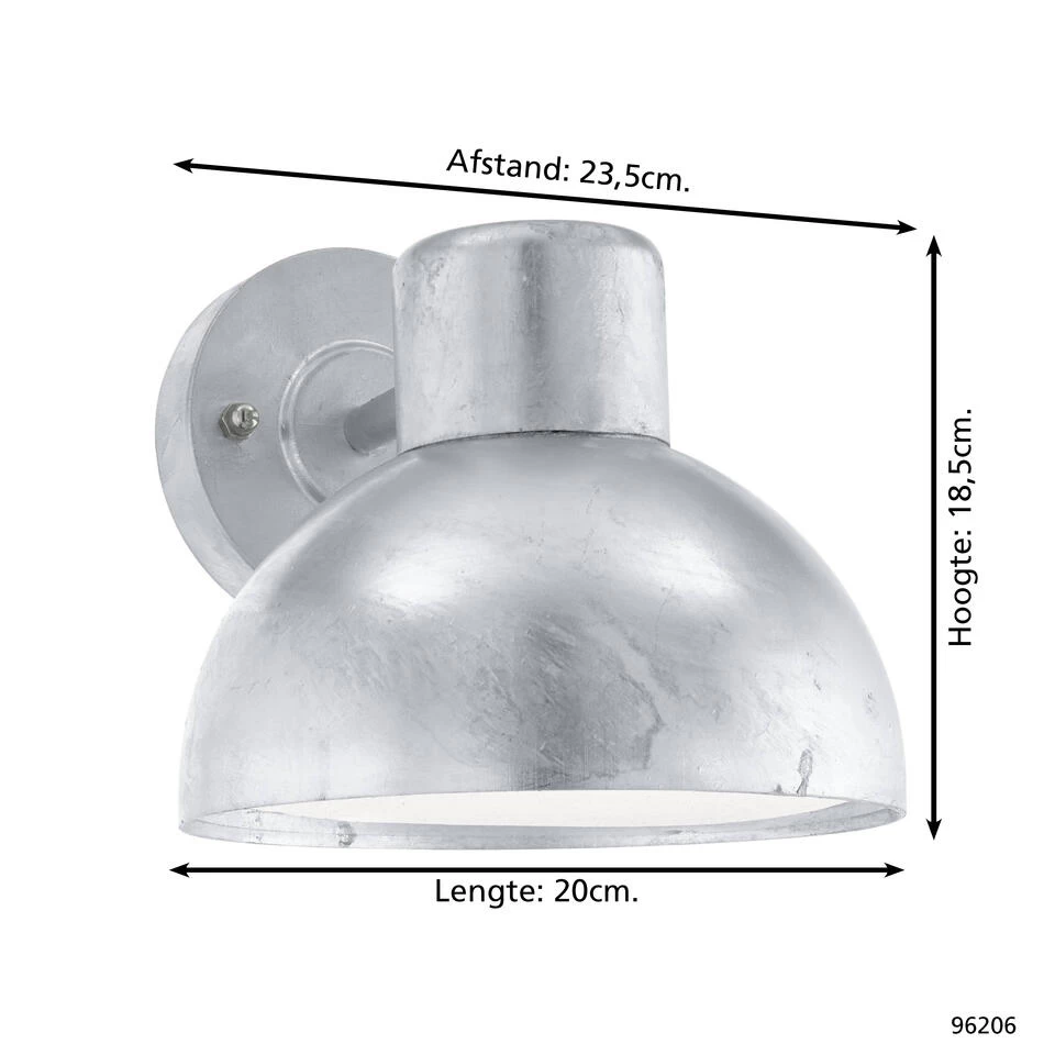 De EGLO Entrimo is een moderne wandlamp gemaakt van gegalvaniseerd staal met een verzinkte afgewerking. Het kapje is uitgerust met hoogwaardig wit (kunststof) glas wat een mooie egale lichtspreiding geeft. Het klassieke design is een smaakvolle toevoeging aan je tuin of woning. Deze wandlamp met Geen lichtbron meegeleverd fitting wordt geleverd exclusief lichtbron en is geschikt voor een maximaal wattage van 1X25W. Dit armatuur heeft een IP44 beschermingsgraad tegen vocht en geschikt voor gebruik buiten.