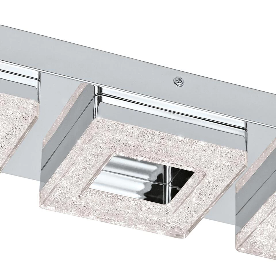 De EGLO Fradelo is een wand/plafondlamp gemaakt van staal en heeft chromen afwerking. Er wordt gebruik gemaakt van hoge kwaliteit kunststof met levensecht kristal effect, die de ruimte een mooie schittering geven. Deze lamp heeft drie geïntegreerde LED modules met een wattage van ieder 4W. De lamp geeft warm wit licht (3000K) en is niet dimbaar. De wand/plafondlamp Fradelo is toepasbaar in diverse woon- en/of werkruimten.