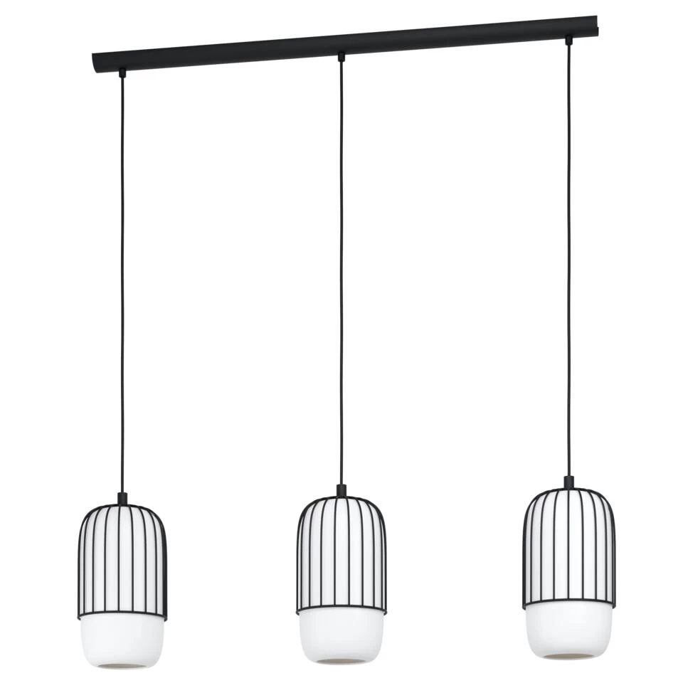Een stalen frame die het glas beschermd, dat is hanglamp Muleges van EGLO. Dit pareltje weet aan elk plafond de show te stelen. Deze lamp is ideaal om jouw interieur een modern en speels tintje te geven. Hanglamp Muleges is door zijn wit met zwarte kleur eenvoudig toepasbaar in ieder interieur. De hoogte van de lamp kun je zelf bepalen tot maximaal 110 cm. Je past eenvoudig de hoogte van de draden aan voor je Muleges aan het plafond hangt. Sluit deze lamp aan op een dimmer (niet meegeleverd) om op elk moment de juiste sfeer te creëren.