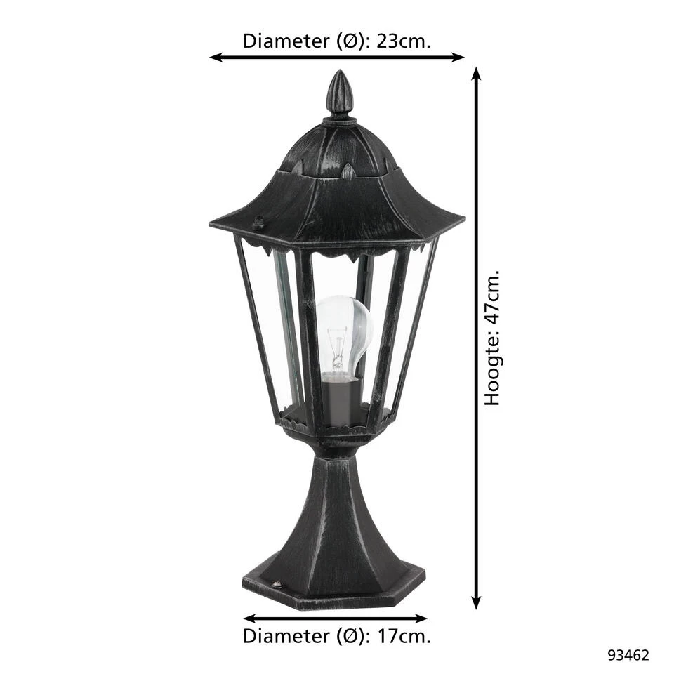 De klassieke buitenlamp heeft de kleur zilver/zwart en is gemaakt van glas.