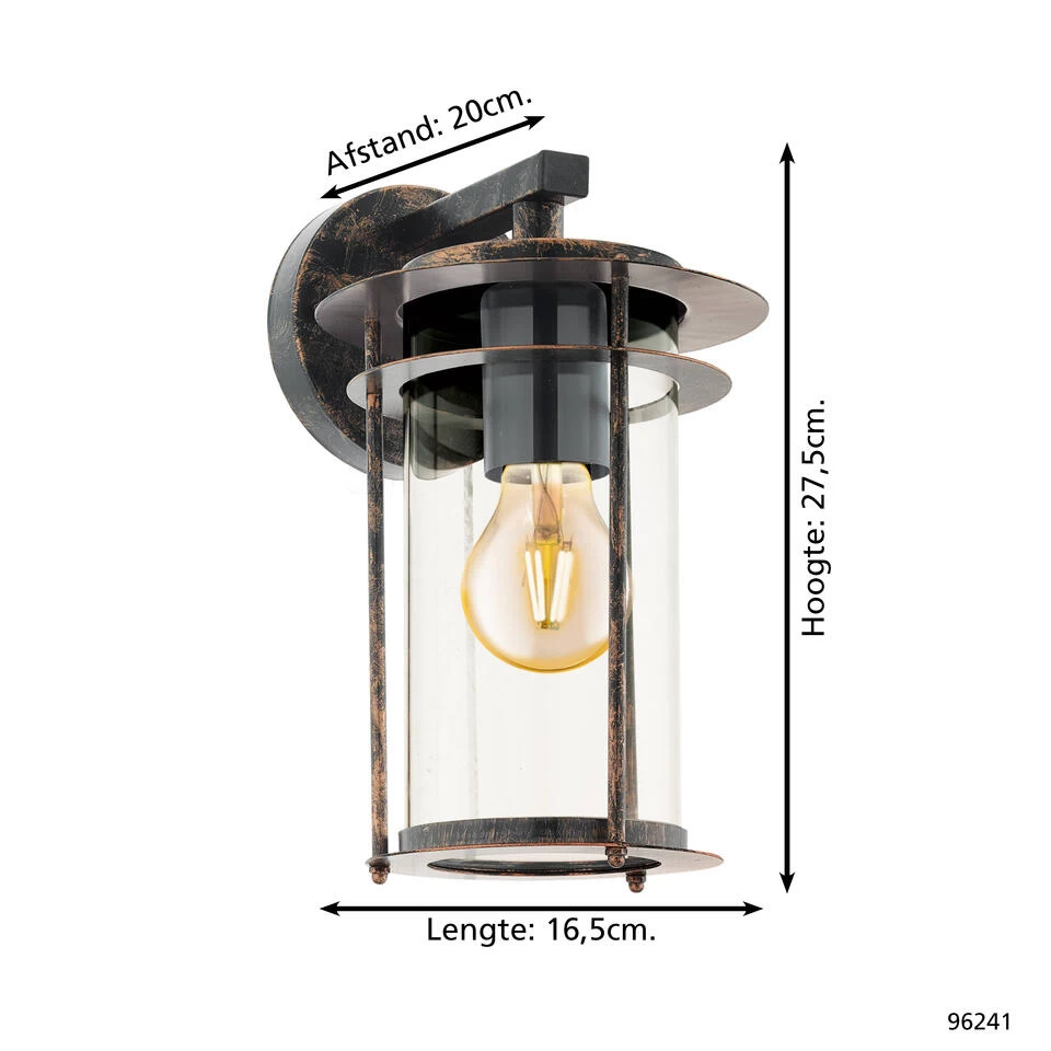De EGLO Valdeo is een wandlamp gemaakt van gegalvaniseerd staal in een antiek-koper kleur. Het kapje is afgewerkt met helder glas waardoor de lichtbron goed te zien is. Kies hier bijvoorbeeld voor een Vintage lichtbron. Het klassieke design is een smaakvolle toevoeging aan je tuin of woning. Deze wandlamp met Geen lichtbron meegeleverd fitting wordt geleverd exclusief lichtbron en is geschikt voor een maximaal wattage van 1X25W. Dit armatuur heeft een IP44 beschermingsgraad tegen vocht en geschikt voor gebruik buiten.