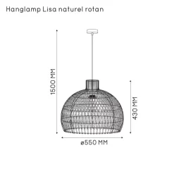 Deze lamp is gemaakt van gevlochten rotan, is naturel van kleur en heeft een afmeting van 46xØ55 cm. De Lisa hanglamp heeft een E27 fitting en een mooi open ontwerp, waardoor je goed de lichtbron kunt zien. Kies dus een mooie LED-lichtbron uit voor een mooi speels effect! Deze natuurlijke hanglamp staat prachtig in je slaapkamer, boven je eettafel, in je woonkamer of in een kinderkamer. Hanglamp Lisa is een handgemaakt lamp met een bohemian/landelijke stijl en zal een echte blikvanger zijn in jouw interieur!