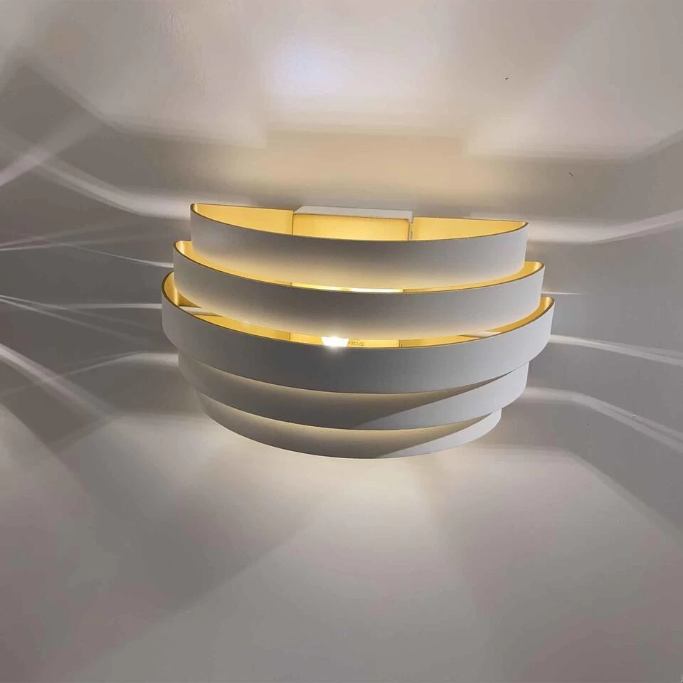 De Scudo is een aparte wandlamp die leverbaar is in 2 maten. Deze wandlamp is verkrijgbaar in het zwart, wit en in een licht bronze kleur. Door de metalen “ringen” waar het licht doorheen schijnt, onstaat er een mooi lichtspektakel op de muur. Deze wandlamp wordt geleverd zonder aansluit snoer maar dit kan er wel simpel aan bevestigd worden. U moet dan een gaatje boren of een inkeping maken in het metalen achterplaatje.