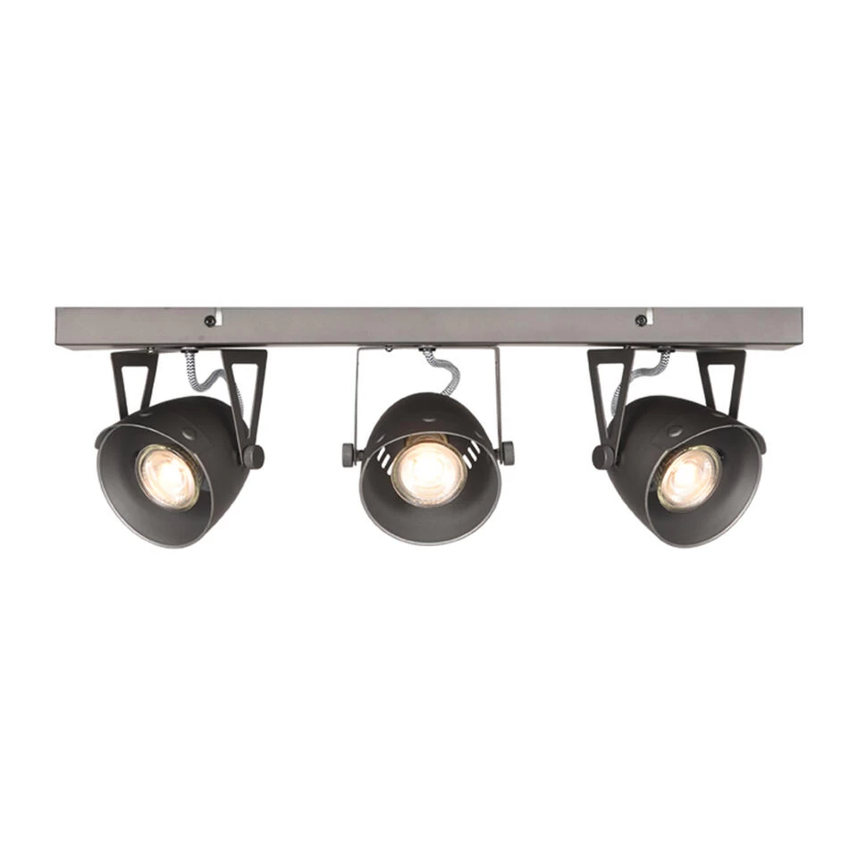 LED spot Cap 3-lichts, uitgevoerd in de kleur burned steel heeft drie ronde kappen, geïnspireerd op de ouderwetse fietskoplamp. De ronde kappen hangen tussen een driehoekig, draaibaar frame. Op de kappen bevinden zich robuuste, ronde bouten die het naast hun schoonheid ook mogelijk maken de kappen van boven naar beneden te laten bewegen om de gewenste richting te bepalen.