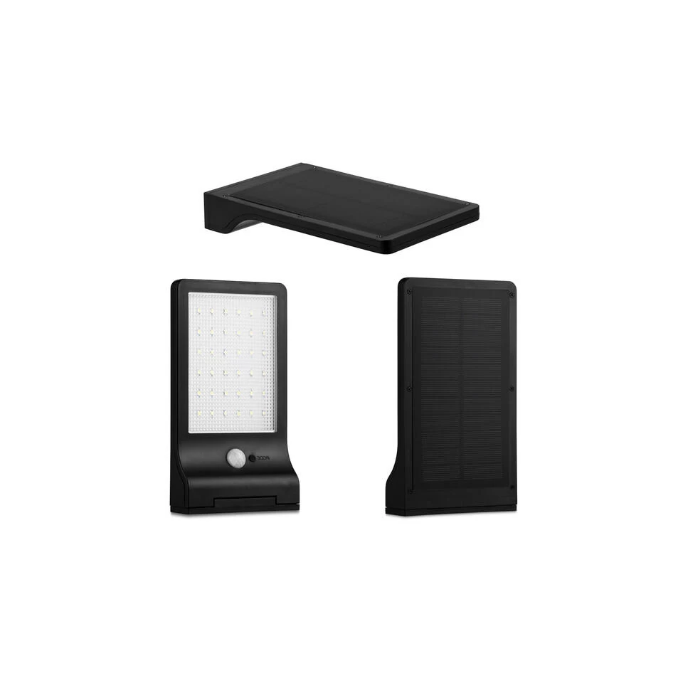 Buitenlamp met bewegingssensor: deze beveiligingslamp zal enorm handig zijn wanneer het donker wordt buiten en je wat extra licht nodig hebt in de tuin. De lamp is voorzien van een bewegingssensor met een bereik van 3 meter. Solar wandlamp: deze wandlamp werkt op zonne-energie. De buitenlamp heeft geen aparte stroomvoorziening nodig en heeft geen vervelende bekabeling. Deze lamp heeft een automatisch aan- en uitschakeling. Draadloze tuinverlichting: de beveiligingslamp bevat 36 LED lampjes. De oplaadtijd van de tuinlamp is 8 tot 10 uur en de werktijd is tot wel 20 uur bij lage helderheid en tot 4 uur bij een hoge helderheid. Waterdicht beveiligingslicht: deze beveiligingslamp is ultra dun. Het licht heeft een afmeting van 19,2 x 3 x 11 cm. Het lampje is voorzien van een zonnepaneel en laadt automatisch op. Deze lamp wordt ingeschakeld zodra het donker wordt. Buitenverlichting details: afmetingen: 19,2 x 3 x 11 cm; zonnepaneel: 5,5VDC 2W 250mAh; oplaadbare batterij: 2000mAh Li-ion; LED-lampen: 36 stuks (totaal max 2,16W vermogen LED-lampen); waterbestendig – IP44; bewegingsdetectie: Bereik van 3 m.