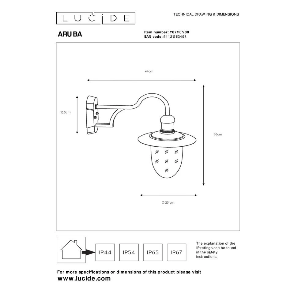 Hou je van gezelligheid? Dan is deze Aruba-buitenverlichting iets voor jou. De mooie klassieke vorm neemt je op slag mee naar vervlogen tijden. De zwarte kleur van de armatuur versterkt dat gevoel extra. Als wandlicht installeer je Aruba eenvoudig aan elke buitengevel. Weer of wind speelt hem geen parten. Dankzij de arm heb je trouwens extra speelruimte. Zo kan je makkelijk onder de buitenverlichting plaatsnemen op een gezellig bankje of aan je terrastafel. Zeker in combinatie met een landelijk interieur is Aruba een topper.
