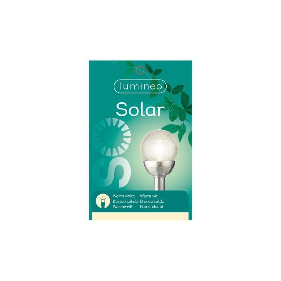 Materiaal: kunststof. Formaat diameter: 8 cm, hoogte: 30,5 cm. Lengte grondpin: 11 cm. Kleur licht: warm wit. Branduren indien volledig opgeladen: ca. 8 uur. De brandduur hangt af van de weersomstandigheden, 8 uur volle zon zorgt voor een maximaal aantal branduren. Het lampje is niet vervangbaar.
