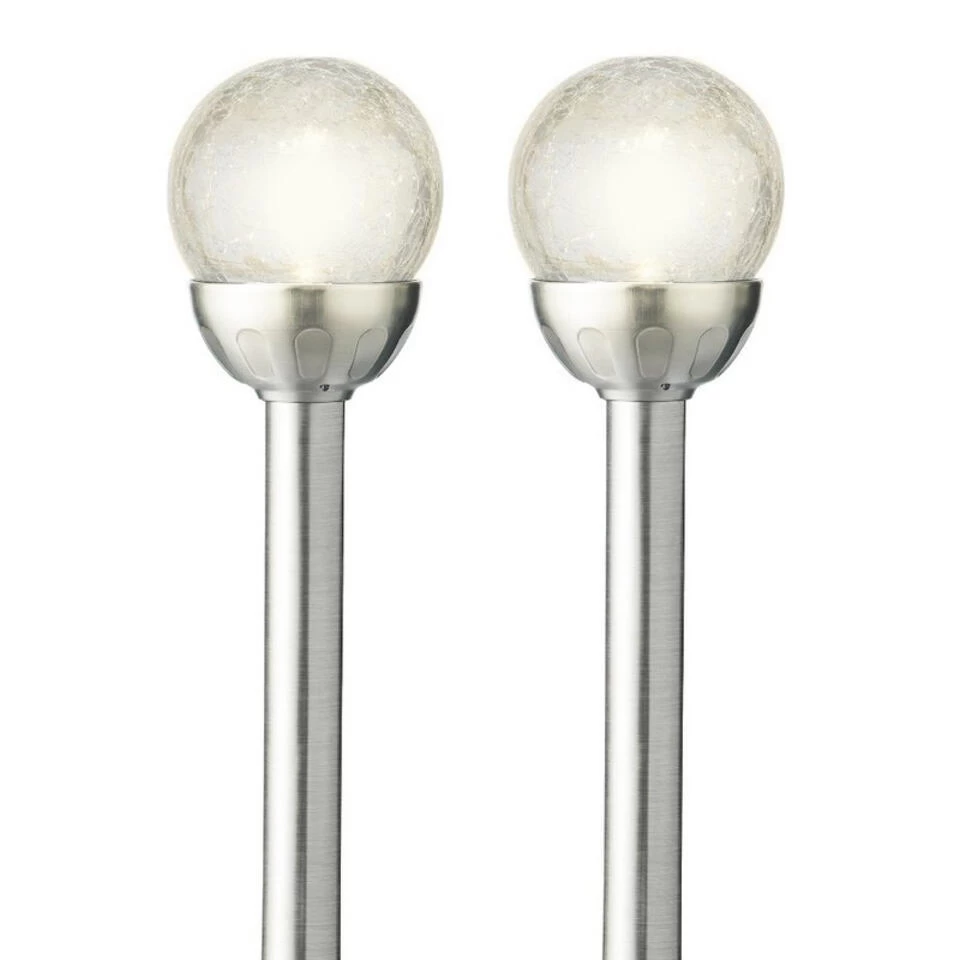 1x Buitenlampen/tuinlampen LED solar verlichting op zilveren steker/grondpin/grondpen. Verlicht het tuinpad/looppad of licht een plantenborder uit met meerdere van deze lampen. De lampen zijn milieuvriendelijk aangezien ze zelfvoorzienend zijn in stroom dankzij de zonnepanelen. U kunt de lamp overal plaatsen en ook weer verplaatsen omdat u geen elektriciteitsdraden hoeft te spannen.