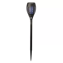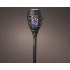 Solar tuinfakkel zwart met gekleurd vlameffect voor in uw tuin. De verlichting werkt op zonne-energie waardoor het zichzelf oplaadt gedurende de dag. Aantal LED: 12. Afmeting: D10 x H49 cm, incl. Branduren: ca. 6 uur wanneer volledig opgeladen. Batterijcapaciteit: 200. Materiaal: kunststof. Inclusief vervangbare batterij. Deze fakkel bevat tevens een schakelaar om deze aan en uit te schakelen.