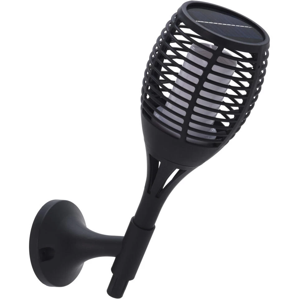 Solar tuinlamp 3 in 1, met vlameffect Led verlichting voor de tuin. De tuinfakkel werkt op zonne-energie waardoor het zichzelf oplaadt gedurende de dag. Inclusief grondpin, muurbevestiging en voet zodat u ze bijvoorbeeld langs een looppad of op tafel kunt zetten of aan de muur kan hangen. Schakelaar: ja. Kleur licht: warm wit, vuureffect. Kleur lamp: zwart. Afmeting: 12 x 78 cm. Materiaal: kunststof. Tuinlampen/tuinverlichting/prikspots op zonne-energie.