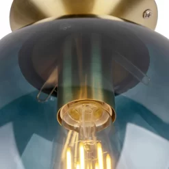 QAZQA Art Deco Plafondlamp Messing Met Oceaanblauw Glas – Pallon