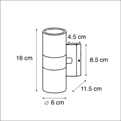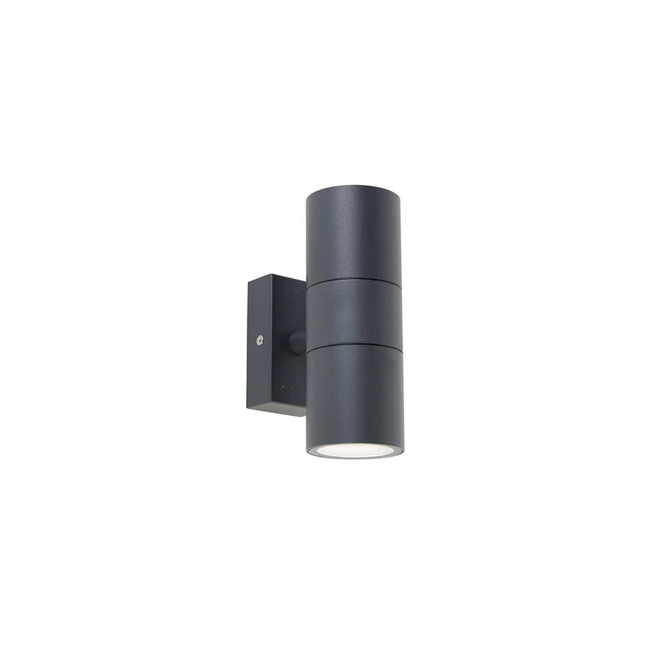 Deze wandlamp Duo is een super functionele buitenlamp met strakke vormgeving uitgevoerd in donker grijs (antraciet). Het licht van deze lamp straalt naar boven en naar beneden. Dit geeft een prachtig effect op de muur. Met een IP waarde van IP44 kan deze wandlamp tegen de regen. Ook is hij gemakkelijk aan te sluiten op 230 volt. De lamp heeft een diepte van 11,5 cm en een hoogte van 16 cm. De montageplaat heeft een lengte van 8,5 cm en een breedte van 4,5 cm. De lamp heeft twee GU10 fittingen en wordt exclusief lichtbronnen geleverd, zorg dat je deze er dus nog bij besteld. De lamp is dimbaar met een externe dimmer (dimmer niet inbegrepen). Deze moderne en strakke wandlamp Duo is zeker een aanwinst voor jouw gevel!