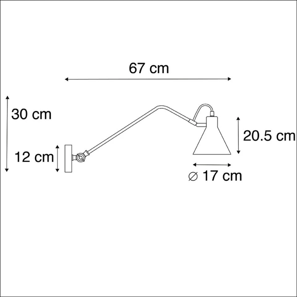 Deze wandlamp van QAZQA heeft een strak en verfijnd armatuur, wat het tot een echte topper maakt. Hij oogt zowel modern als retro dankzij de opvallende vorm. De zwarte kleur maakt hem erg tijdloos. Luna is een unieke wandlamp, de arm en de lampenkap is verstelbaar zodat je het licht kan laten schijnen waar jij het nodig hebt. Hij heeft een lengte van 67 cm en een hoogte van 30 cm. De montageplaat voor aan de muur heeft een hoogte van 12 cm en een lengte van 5 cm. De lamp heeft een grote E27 fitting en wordt exclusief lichtbron geleverd, zorg dat je deze er dus nog bij besteld (max. 60 Watt). De lamp is tevens dimbaar met een externe dimmer: bepaal dus zelf je sfeer! Zorg voor een bijzondere eyecatcher in huis met de Luna.