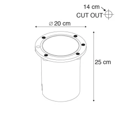 Een simpele maar stijlvolle robuuste grondspot is deze Tribus, afgewerkt in RVS (roestvrij staal). De spot heeft drie GU10 fitting waardoor deze geschikt is voor lichtbronnen met GU10 fittingen (max. 35 Watt). De Tribus is direct aan te sluiten op 230V. Let op: de aansluitkabel wordt bij deze spot niet meegeleverd! Hij heeft een diameter van 20 cm. De inbouw maten: een diameter van 22 cm en een lengte van 14 cm. Deze spot is perfect te gebruiken in de tuin of je terras of oprit. Een super degelijke spot waar je zelfs met je auto overheen kunt rijden! Dankzij de IP-waarde van IP67 ben je zeker dat hij enorm goed bestendig is tegen (regen)water. Je kan de spot dimmen met een externe dimmer. Met deze tijdloze spot doe je zeker niets verkeerd!