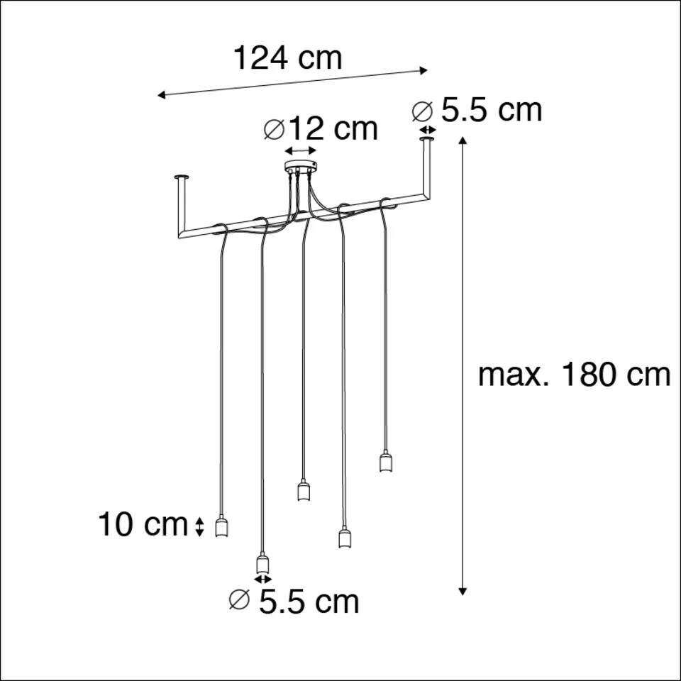 Ben je op zoek naar een stoere industriële hanglamp? Stop dan nu, deze Cavoba is precies wat je nodig hebt! Door het gebruik van industriële materialen zoals metaal gecombineerd met natuurlijke elementen zoals beton past deze hanglamp perfect in jouw industriële interieur. Deze strakke stijl past heel goed in moderne huizen en appartementen, juist door het contrast wat hierdoor ontstaat. De Cavoba wordt zonder lichtbronnen geleverd, kies voor vijf mooie filament lampen van maximaal 60 Watt met gloeidraad in verschillende vormen, dit geeft een mooi contrast met de stoere metalen buizen. De lamp heeft een lengte van 124 cm en een breedte van 12 cm, perfect boven de eettafel of een kookeiland. De armen hebben ieder een lengte van 180 cm en kun je zelf op de gewenste lengte draperen. Deze hanglamp is dimbaar, maar wordt exclusief dimmer geleverd. Dus je hoeft niet verder te kijken, bestel nu deze perfecte industriële hanglamp.
