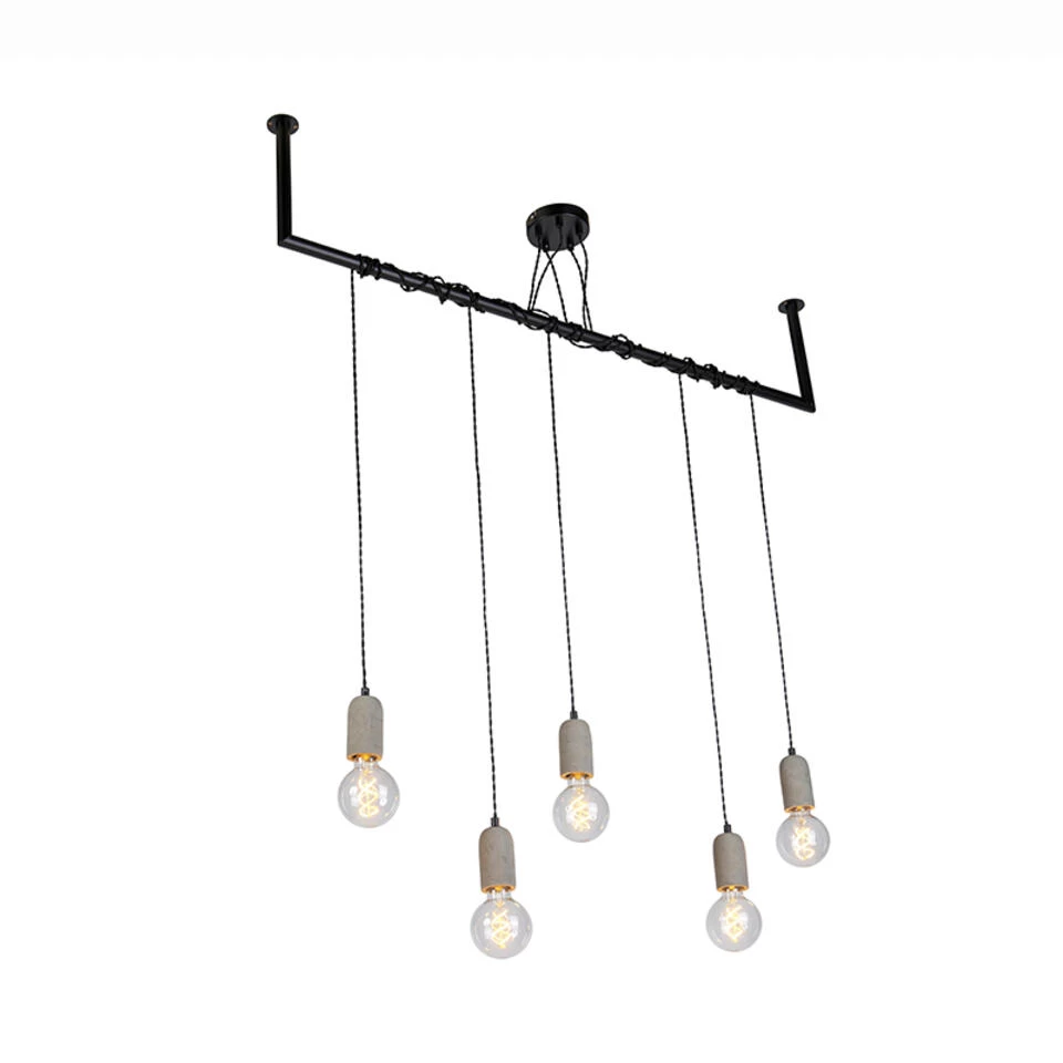 QAZQA Industriële Hanglamp Zwart Met Beton 5-lichts – Cavoba