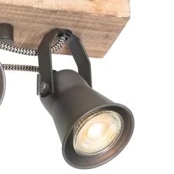 QAZQA Landelijke Spot Zwart Met Hout 4-lichts Verstelbaar – Jelle
