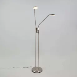 QAZQA Moderne Vloerlamp Staal Met Leeslamp Incl. LED – Eva