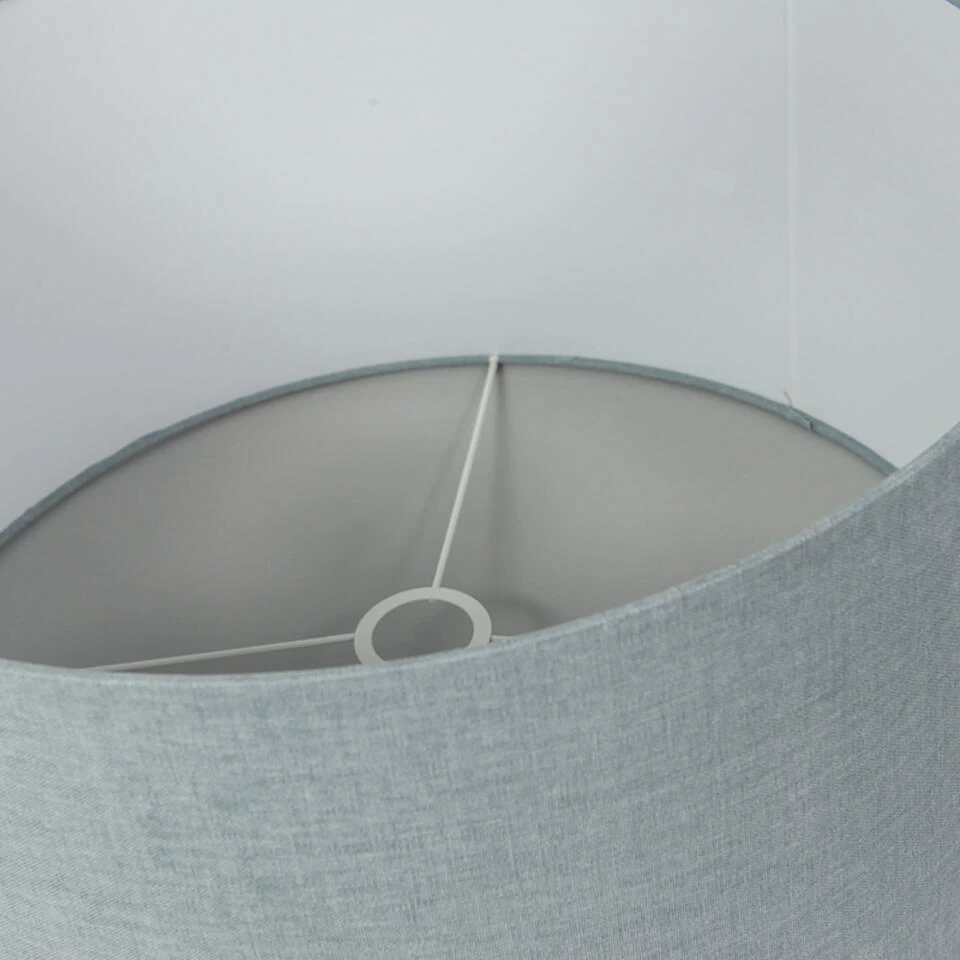 Maak je lamp helemaal af met deze lichtblauwe/grijze lampenkap! Met deze lampenkap kan je jouw vloerlamp of hanglamp voorzien van een sfeervol uiterlijk waarbij de stoffen kap als sfeermaker fungeert. De afmetingen van deze kap: een diameter van 50 cm en een hoogte van 25 cm. Hij heeft een E27 fitting. Zorg nog voor een armatuur en lichtbron en je lamp is compleet en klaar om te stralen in jouw interieur. Zorg voor meer sfeer in huis met deze lampenkap!