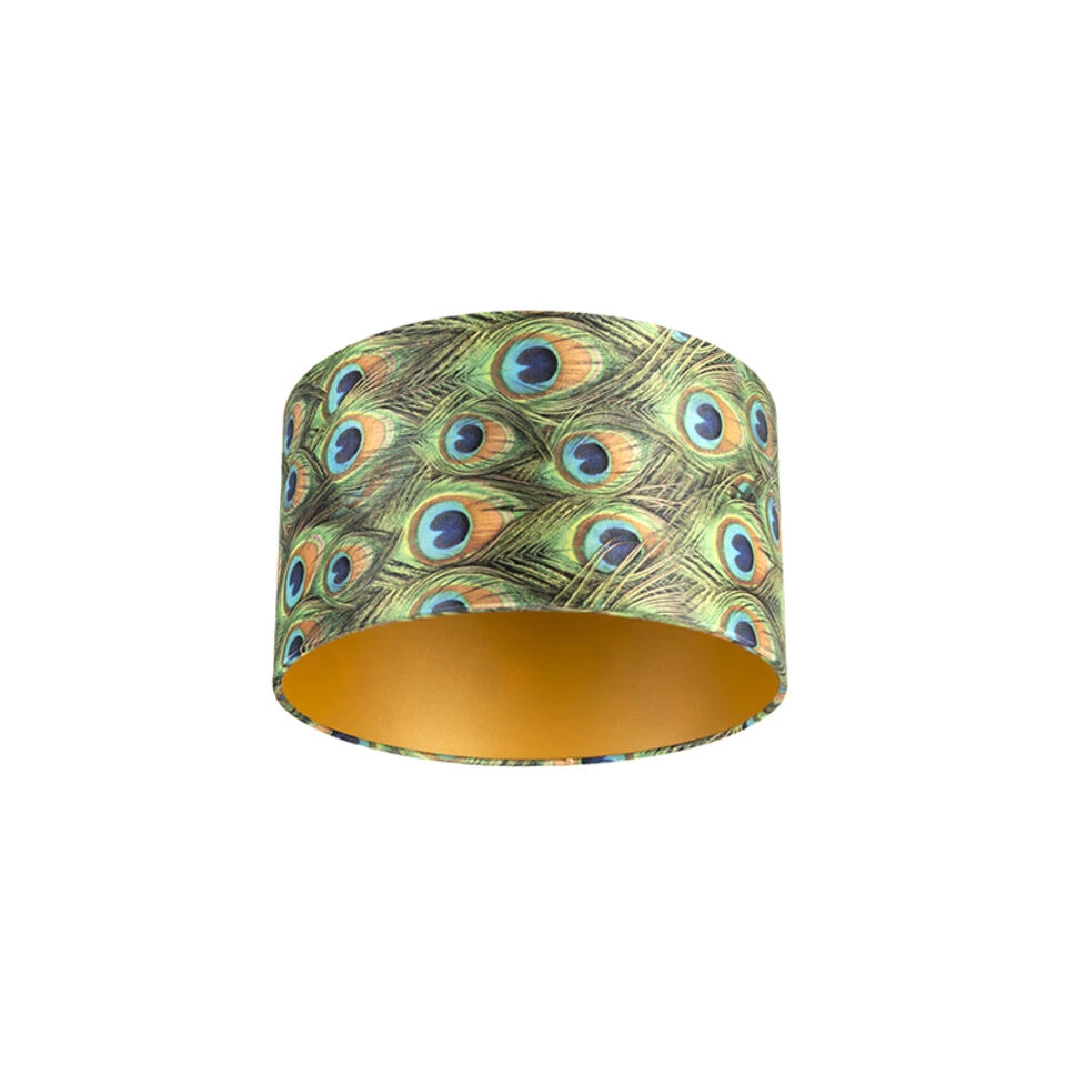 QAZQA Velours Lampenkap Pauw Dessin 35/35/20 Met Gouden Binnenkant