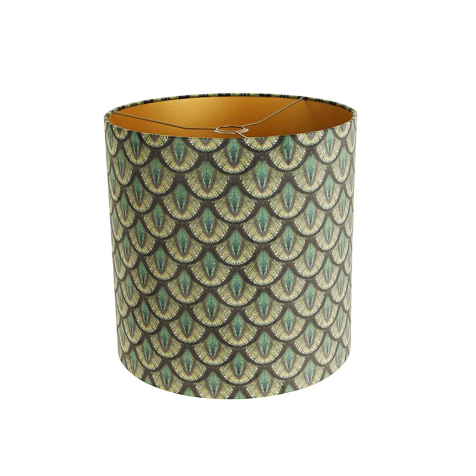 QAZQA Velours Lampenkap Pauw Dessin 40/40/40 Gouden Binnenkant