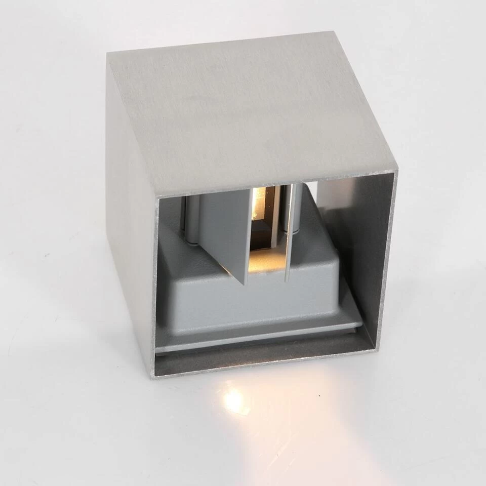 Het aparte is dat dit armatuur is voorzien van 4 “klepjes” waarmee de stralings hoek veranderd kan worden. De bundel boven groot en beneden klein of andersom of toch allebei dezelfde hoek? De keuze is aan u en veranderen is een fluitje van een cent! De hoeken zijn onafhankelijk stelbaar tussen de 40 en 120 graden. Deze buitenlamp wordt geleverd incl. 2x ingebouwde LED lampen van ieder 4 Watt. Deze LED lichtbronnen geven bij elkaar 480 Lumen aan licht in een warm witte lichtkleur (2700 Kelvin). De hoogte is 10 cm en de breedte is 10 cm, de diepte is ook 10 cm. Kleur: Mat chroom