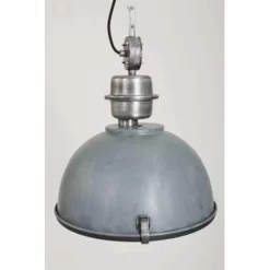 Robuuste hanglamp van leverancier Steinhauer van ruw metaal en voorzien van gevlekte aangebrachte kleuren. Door de stoere ketting en het (lege) transformatorblok aan de bovenzijde lijkt het net of deze lamp is ontsnapt uit een oude industrie hal. De Bikkel hanglampen zijn leverbaar in verschillende kleuren en sommige kleuren ook in een grotere uitvoering (doorsnede 52 cm). Door de E27 fitting is dit armatuur geschikt om er een LED lamp in te draaien die ook simpel dimbaar is met een externe dimmer. Aan de onderzijde bevindt zich een matte glasplaat die door 3 klemmen wordt vast geklemd, deze glasplaat zorgt voor een egale lichtverdeling en om uit te sluiten dat er rechtstreeks in de lichtbron gekeken kan worden.