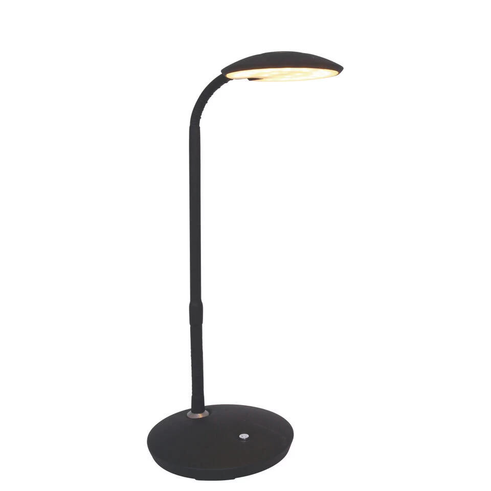 Zwarte tafellamp / bureaulamp uit de Zenith LED serie. Door de combinatie van het design, het materiaal en de kleur. Wordt geleverd inclusief 2*6W Geïntegreerde LED modules. A+ energielabel. Kleurtemperatuur instelbaar van 2200 tot maximaal 4000 Kelvin met lichtopbrengst van 700 Lumen. De 1470ZW is te bedienen middels een Pushdimmer op de voet van de lamp. Wordt inclusief snoer van 153 centimeter geleverd. De diameter van de kap is 11,5 centimeter en de totale hoogte is 42 centimeter.