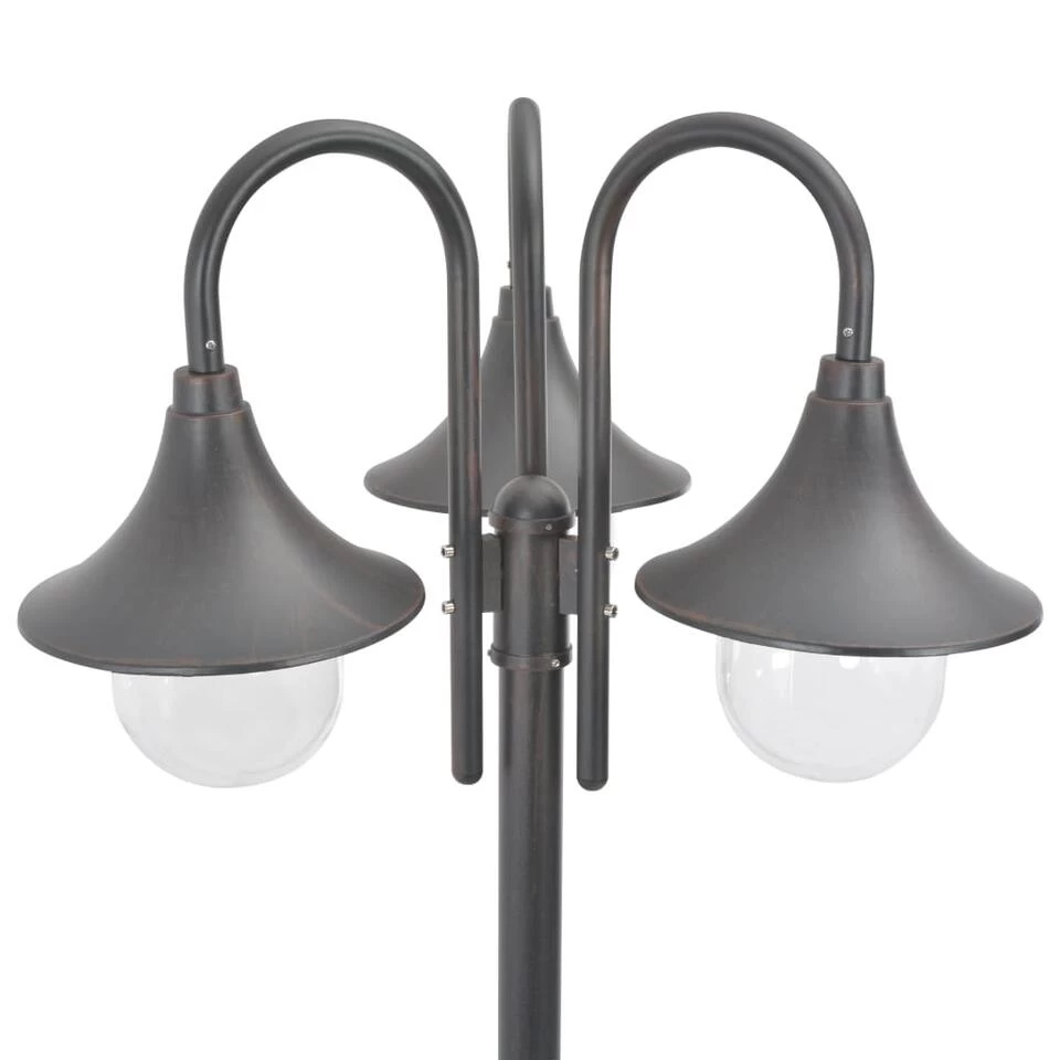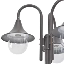 De hoogwaardige buitenlamp is gemaakt van duurzaam aluminium met PVC lampenkap voor jarenlang gebruik. De tuinlantaarn heeft drie E27 fittingen. Let op, de peertjes zijn niet bij de levering inbegrepen.