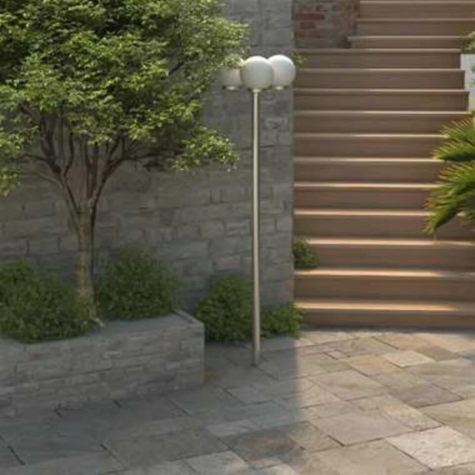 De lamp heeft een stevige constructie en is gemaakt van roestvrij staal. Hij is dus perfect om je tuin te verlichten. Deze tuinlamp heeft 3 bollen van 25 cm in diameter.