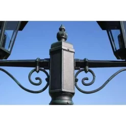 Deze klassieke tuinlantaarn heeft 2 armen en een lengte van 215 centimeter. De tuin lantaarn heeft een maximaal wattage van 60 Watt per lamp en kan daarmee perfect worden gebruikt voor het verlichten van uw tuin, terras of oprijlaan. De lampenkappen van de tuinlamp zijn gemaakt van glas en het donkergroene frame en standaard zijn beiden gemaakt van sterk aluminium.