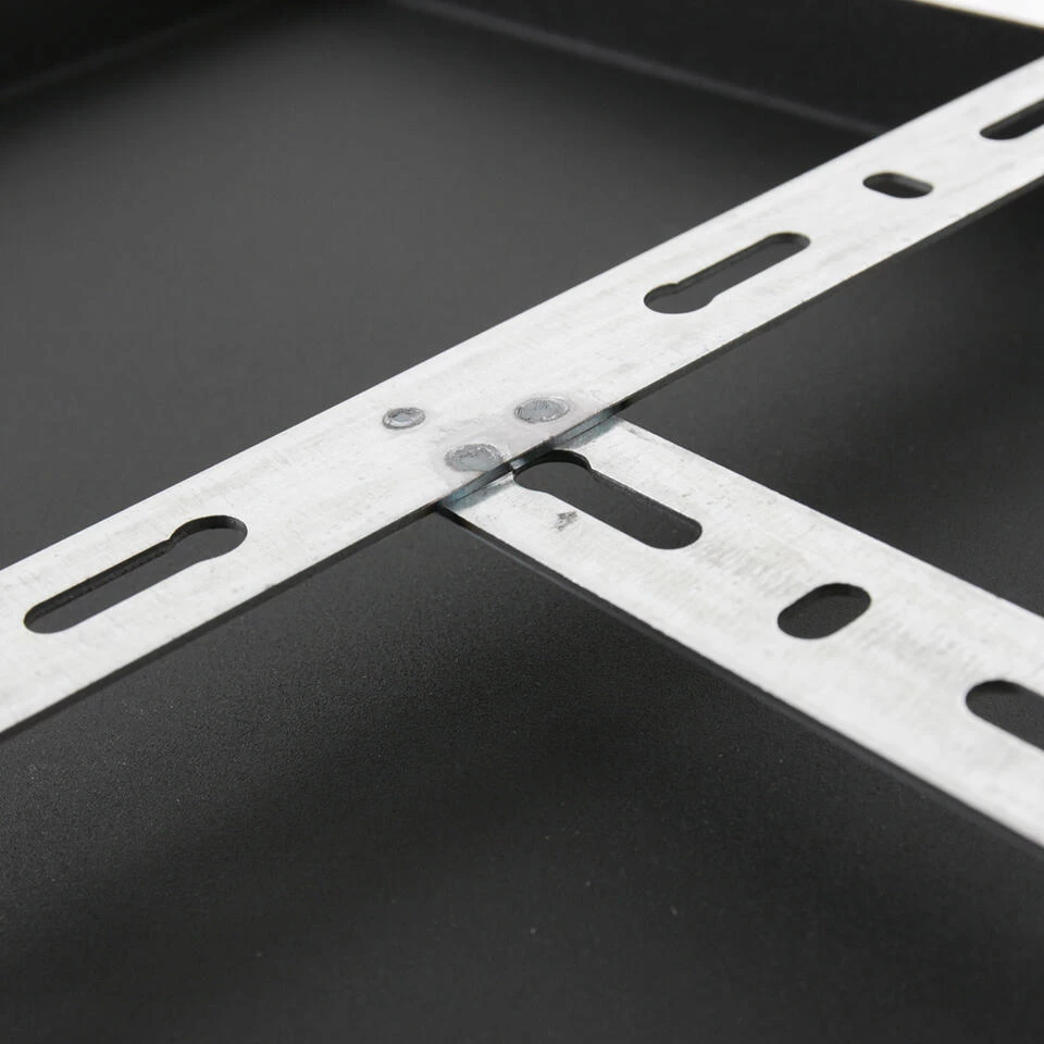 Er worden geen trekontlasters meegeleverd (dopjes met draadeind en moer om het snoer mee vast te zetten), deze zijn wel apart mee te bestellen. Ook wordt deze plaat geleverd zonder snoer. Deze balk is 140 cm lang en 25 cm breed, de hoogte is 2,5 cm. Kleur: Mat zwart.